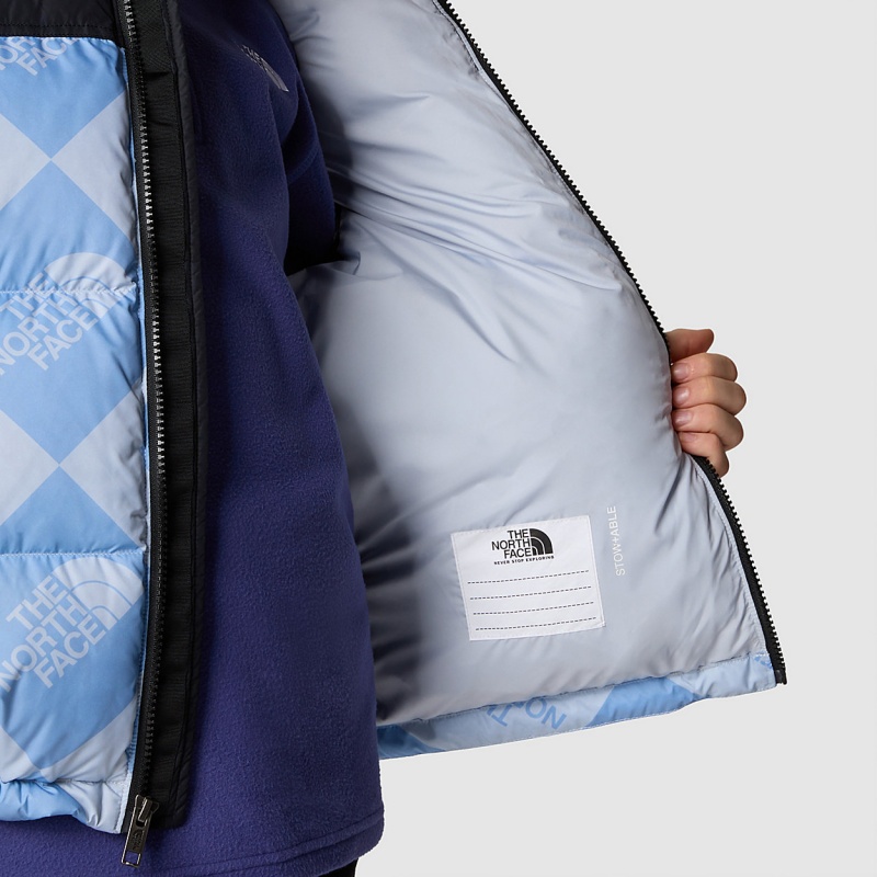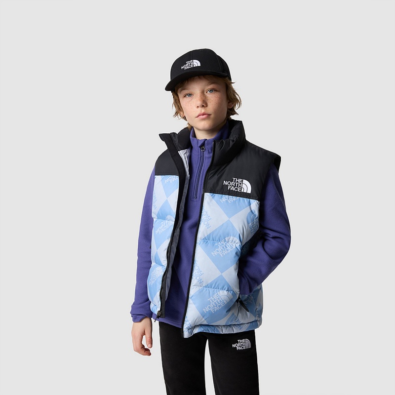 Kids The North Face 1996 Retro Nuptse Gilet Dusty Periwinkle Logo Geometry Print - The North Face Greece